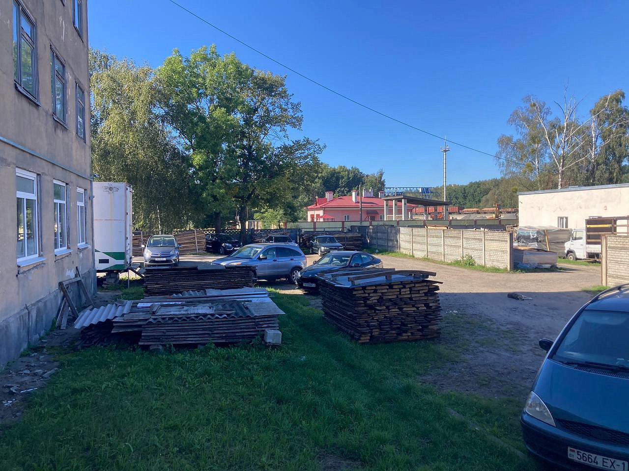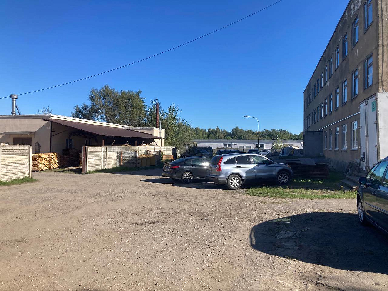 Большая парковка, закрытая территория.
