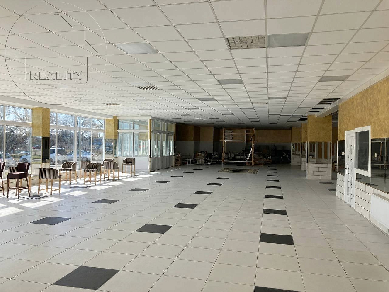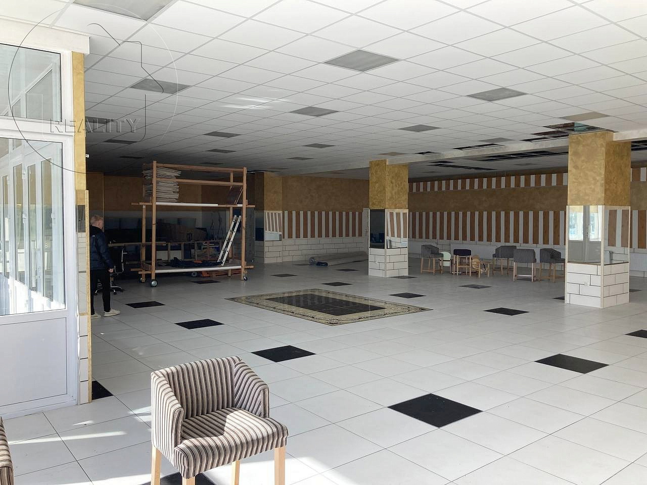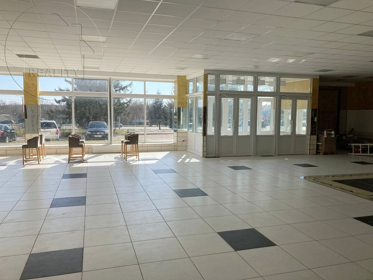 Подсобные помещения, с отделкой (потолок армстронг, пол плитка, стены декоративная отделка), электрика скрытая электропроводка 220/380В (максимальная мощность 36 кВт, есть возможность увеличения), высота потолков 3,5 м., приточно-вытяжная вентиляция, пожарная сигнализация, ворота для разгрузки, раздельный санузел, широкие витражные окна, все коммуникации.