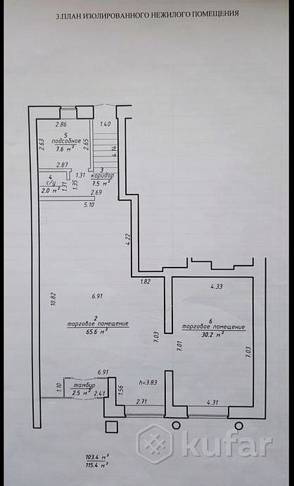 Продам Торговое помещение Центр Брест ул. Комсомольская, 52, площадь 115,4 кв.м. Два зала (65,6 и 30,2 кв.м.), подсобное помещение (7,6 кв.м.).