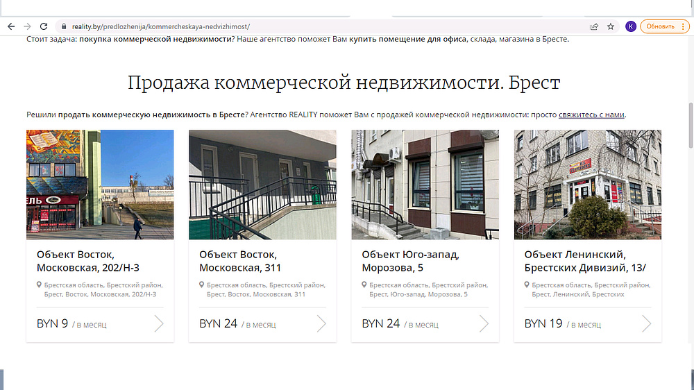 АГЕНСТВО НЕДВИЖИМОСТИ «РИАЛИТИ» БРЕСТ НА БЕСПЛАТНОЙ ОСНОВЕ ПРЕДЛАГАЕТ ПОМОЩЬ В ПОИСКЕ И ПОДБОРЕ КОММЕРЧЕСКОЙ НЕДВИЖИМОСТИ РАЗЛИЧНОГО НАЗНАЧЕНИЯ.