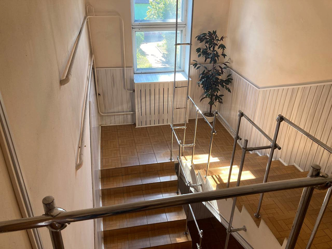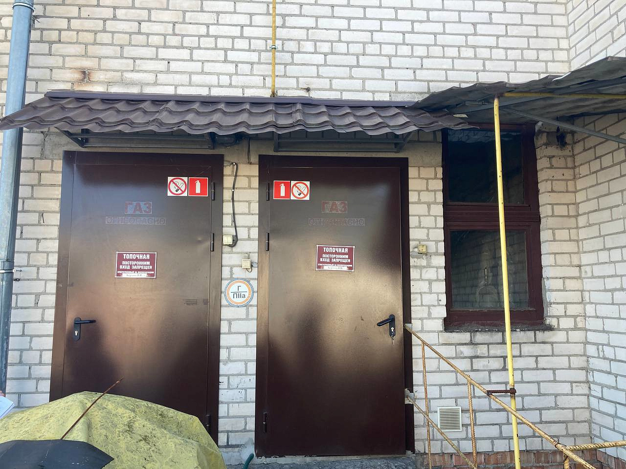 Фундамент – ж/бетонный ленточный, стены наружные – кирпич толщин 56 см., внутренние – кирпич толщин 56 см., перегородки – кирпич, перекрытия – ж/б плиты, кровля – совмещенная рулонная, полы – плитка/бетон/паркет, проемы оконные – дерево/ПВХ/стеклопакет, проемы дверные – двери деревянные, металлические, ПВХ, ворота металлические, наружная отделка стен – оштукатурено/окрашено, внутренняя отделка – оштукатурено/окрашено/обои, отопление – центральное, нижняя разводка, радиаторы стальные, водопровод – центральный, трубы стальные, горячее водоснабжение – подключено от собственной котельной наа газу, ванна (душ) – есть, канализация – центральная, трубы чугунные, электроснабжение – скрытая электропроводка, медные провода, газоснабжение – сетевое, вентиляция – естественная, радио – трансляционная сеть, телефон – телефонный ввод, бетонные ступени.