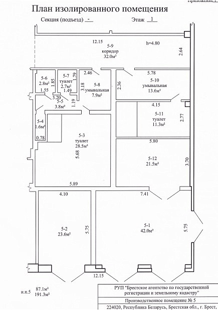 - Изолированное помещение площадь 191,3 кв.м., назначение – Производственное помещение;