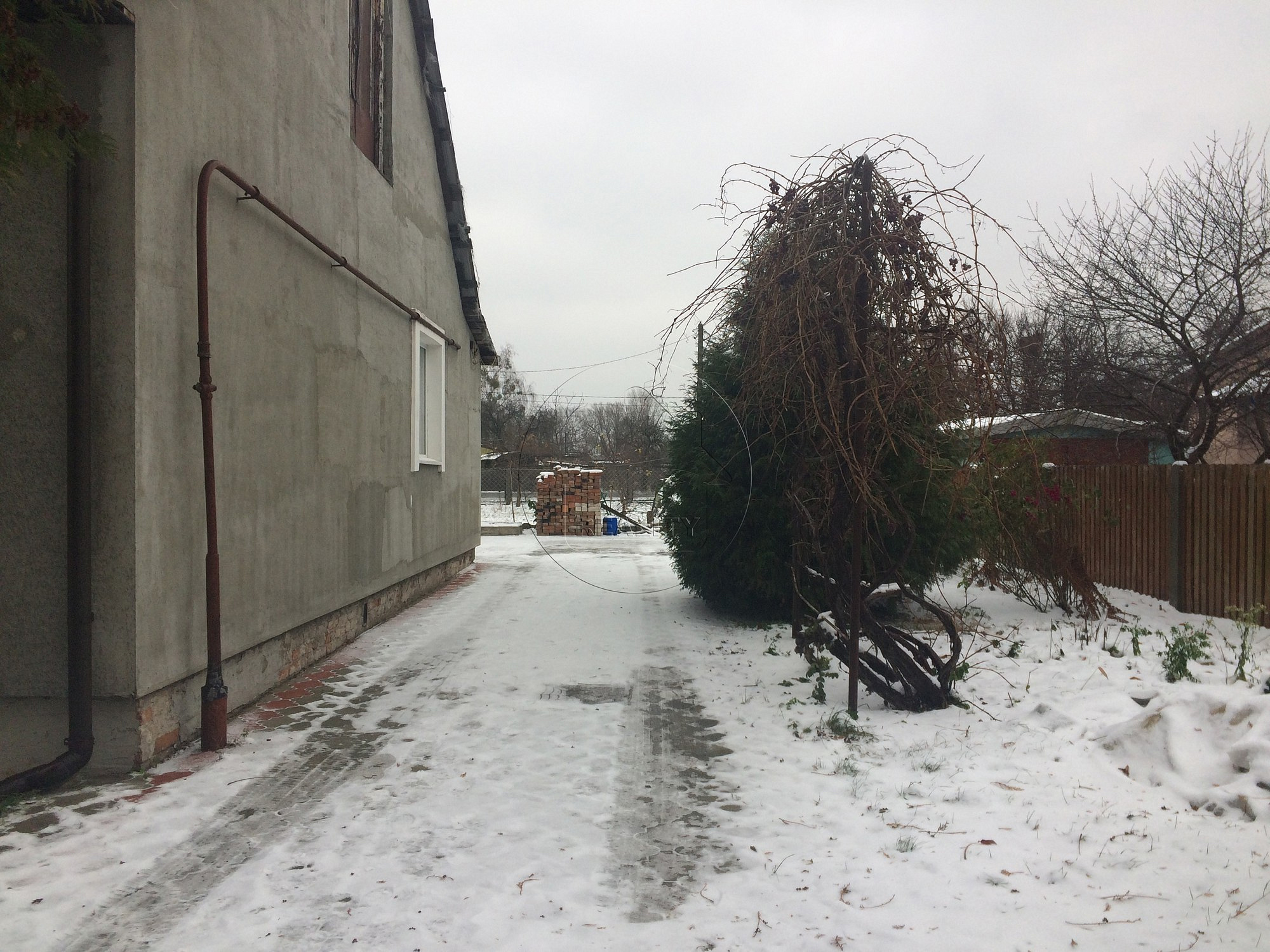 Один общий вход во двор. Дом от улицы утеплен минватой и оштукатурен.