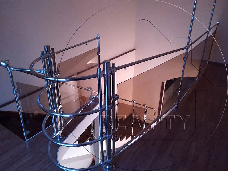 На первом этаже расположена большая кухня, холл с камином, просторный зал, гардеробная, прихожая, санузел, лоджия. На втором этаже две спальни, кладовая, балкон с террасой, санузел.