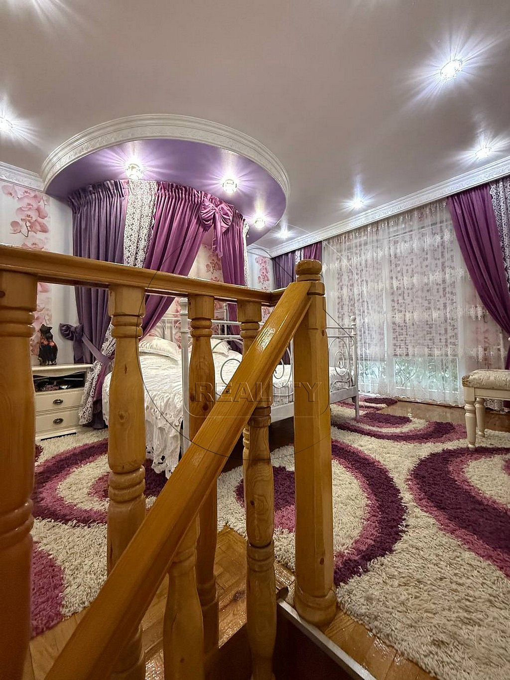 Высота потолка - 2.60 м. На 1 этаже расположена кухня , зал , прихожая, большой совмещенный санузел. На 2 этаже - спальня. Стены оклеены обоями, полы - паркет, на кухне - плитка, пол с подогревом. Деревянные евроокна.