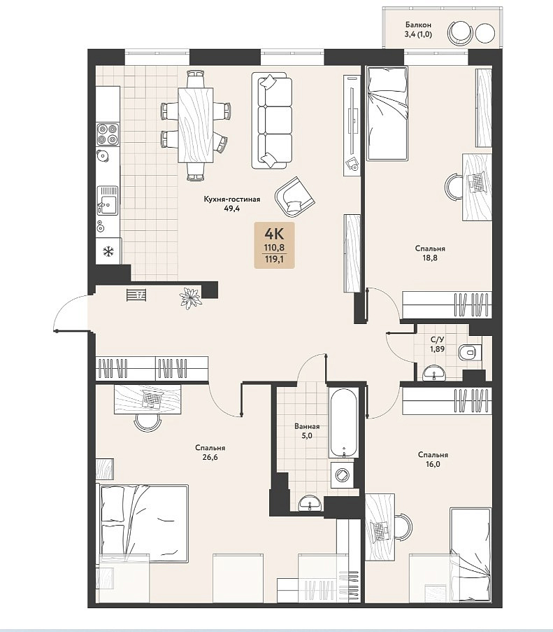 Предлагаем четырехкомнатные квартиры в доме 2025 года постройки, расположенном на проспекте Машерова! Жилищный комплекс создан для тех, кто ценит жизнь в центре!