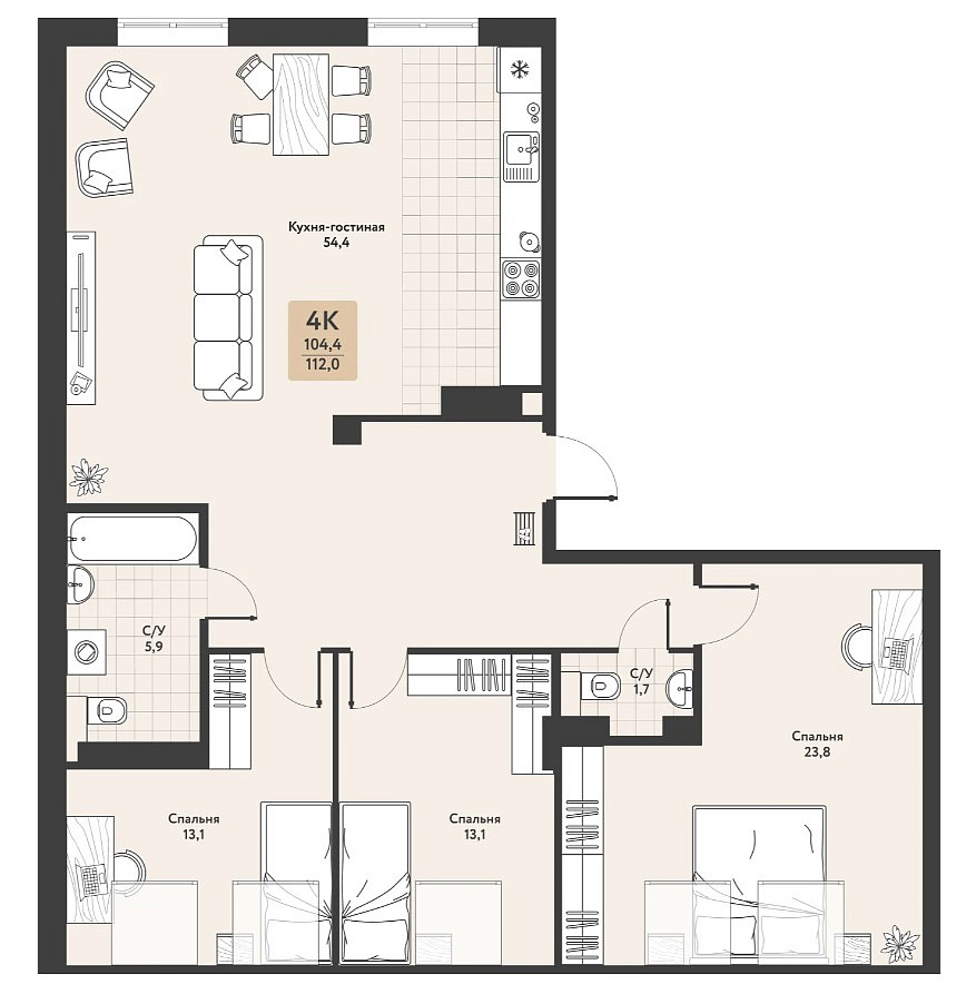 -четырехкомнатные квартиры различной площади (актуальные планировки указаны в объявлении)