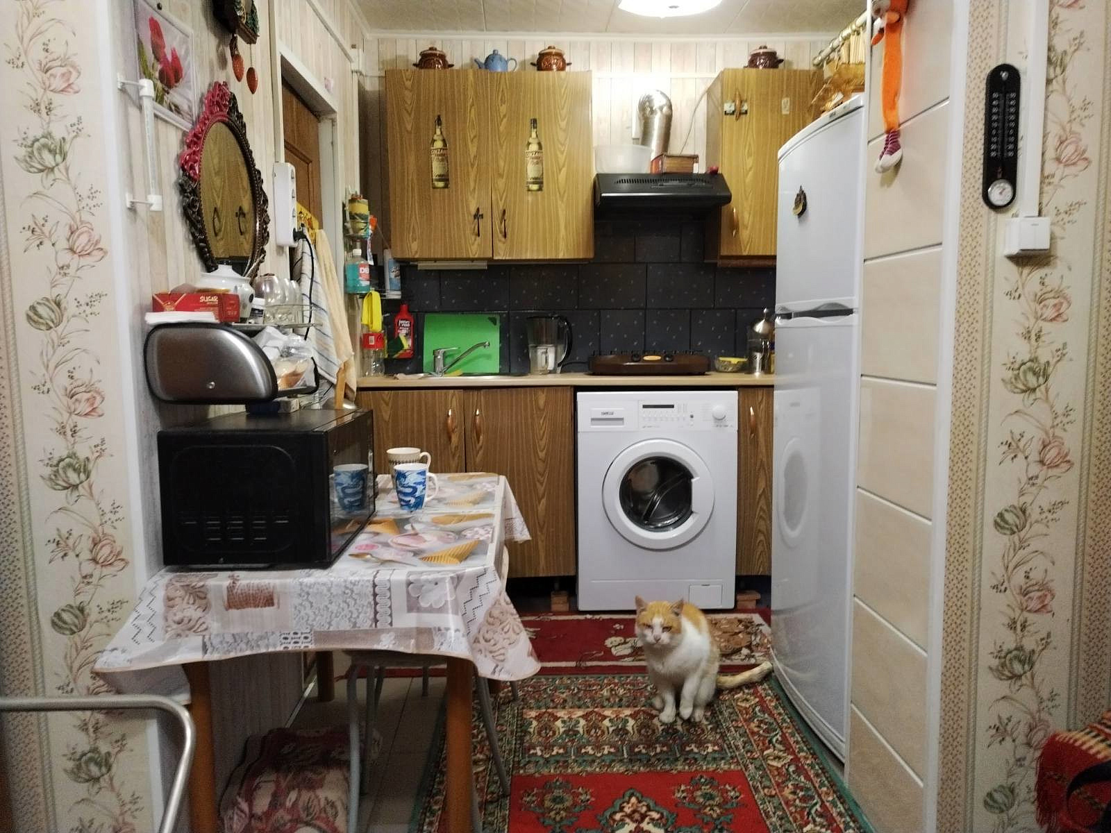 Совмещенный санузел, комнаты 6 м2 и 12 м2 , кухня 5 м2, кладовая 2.5 м2 ,тамбур 1.5 м2.