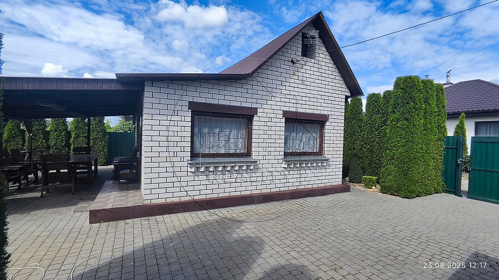 Фундамент дома - ленточный монолитный / армированный бетон/. Стены – каркасные, обложены силикатным кирпичом. Кровля- профнастил / металл. Окна - деревянные. На входе- металлическая входная дверь.