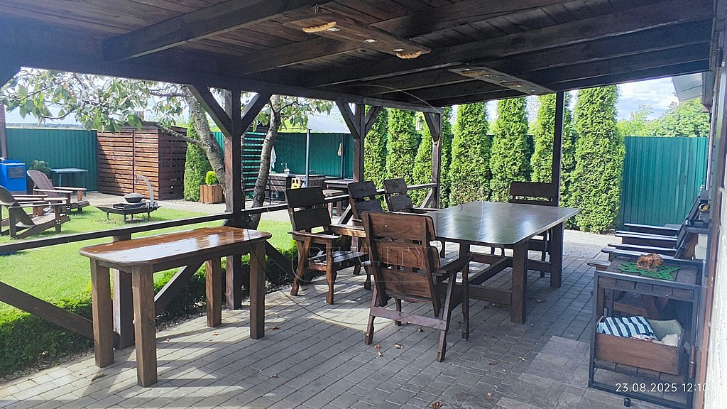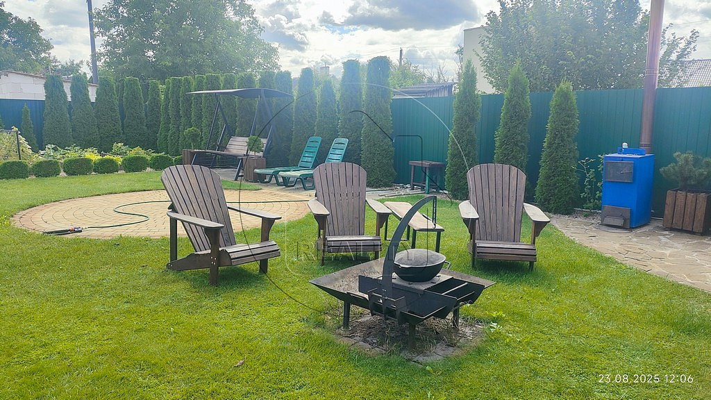 Имеются также мангал с навесом, хозблок для садового инвентаря, дровник. Место для отдыха, релакса и посиделок у костра.Перед домом на границе участка есть место для стоянки авто.