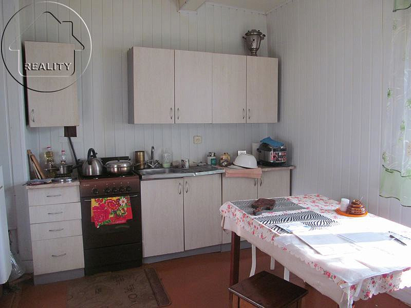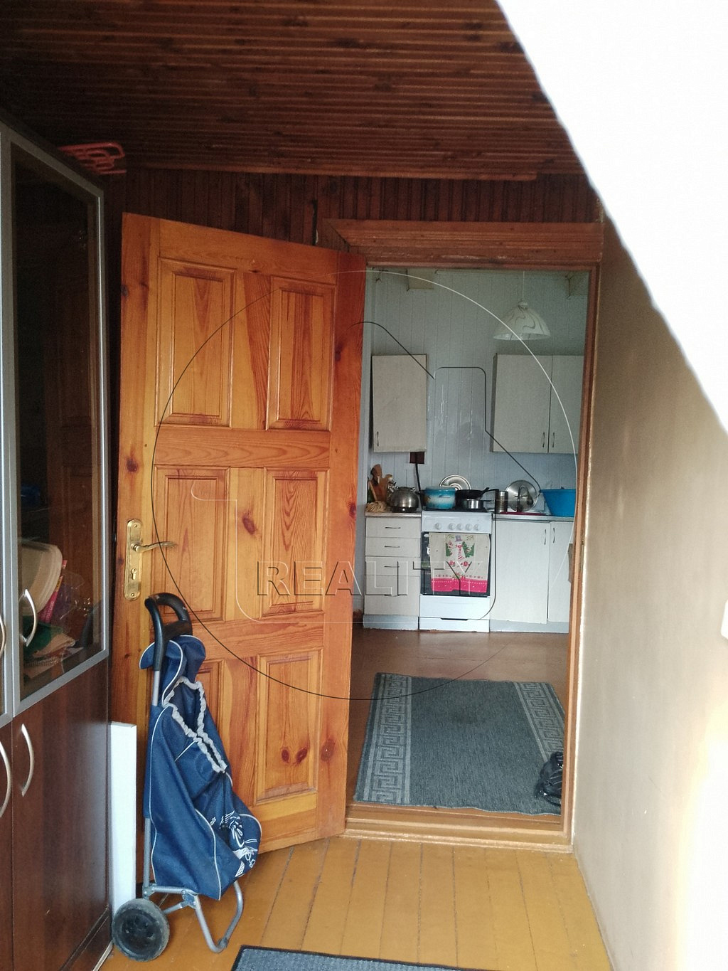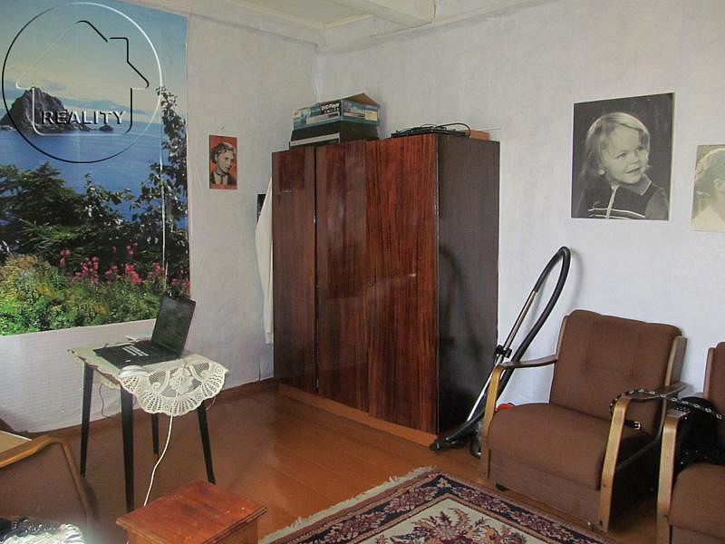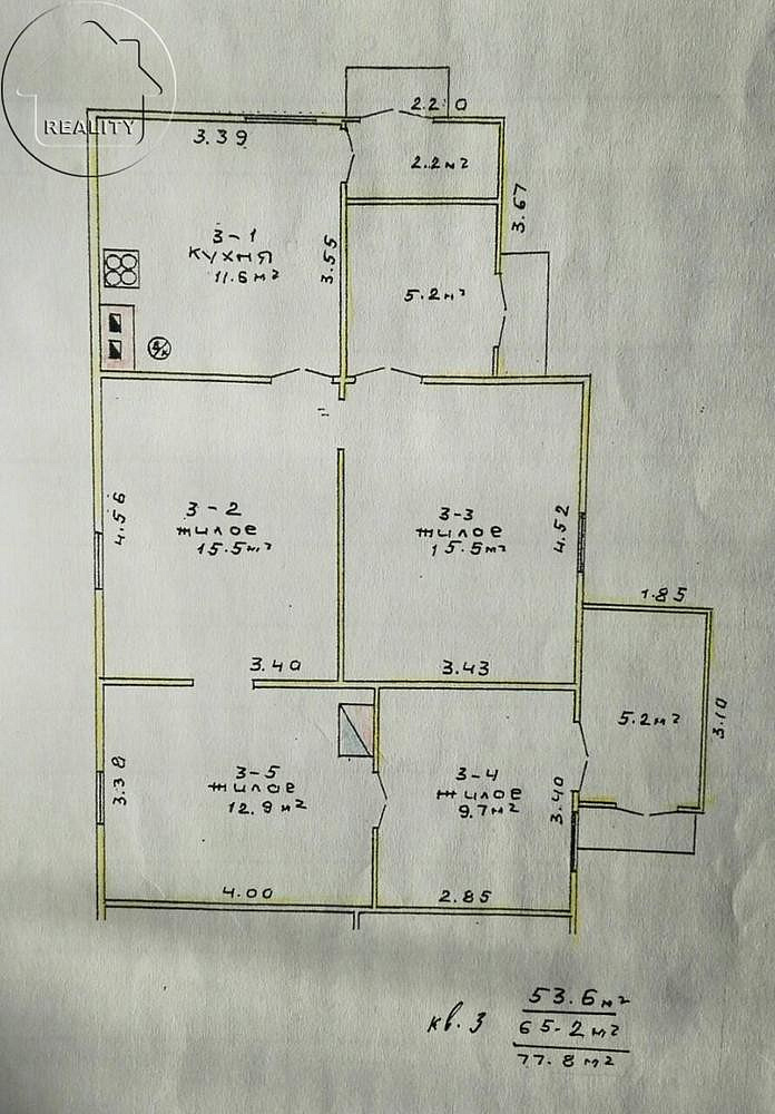 Деревянный дом 1931 года постройки. Общая площадь продаваемой 4 комн. квартиры 77,8 м2, жилая 53,6 м,2, кухня 11,6 м2.