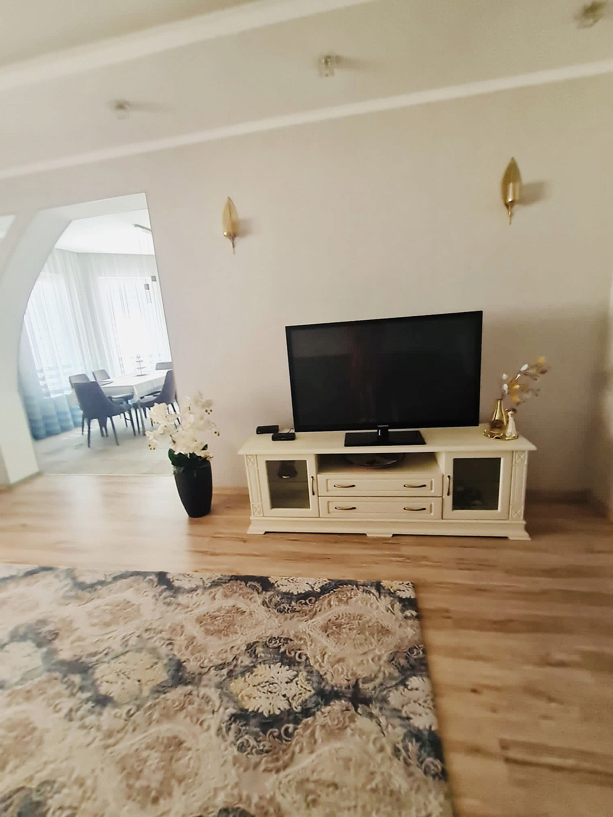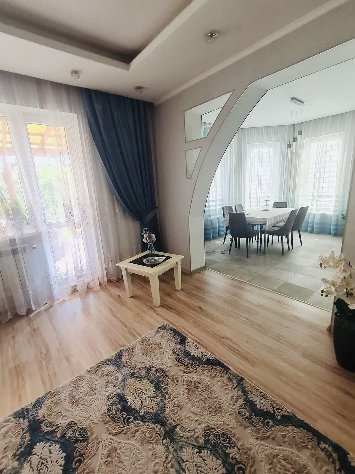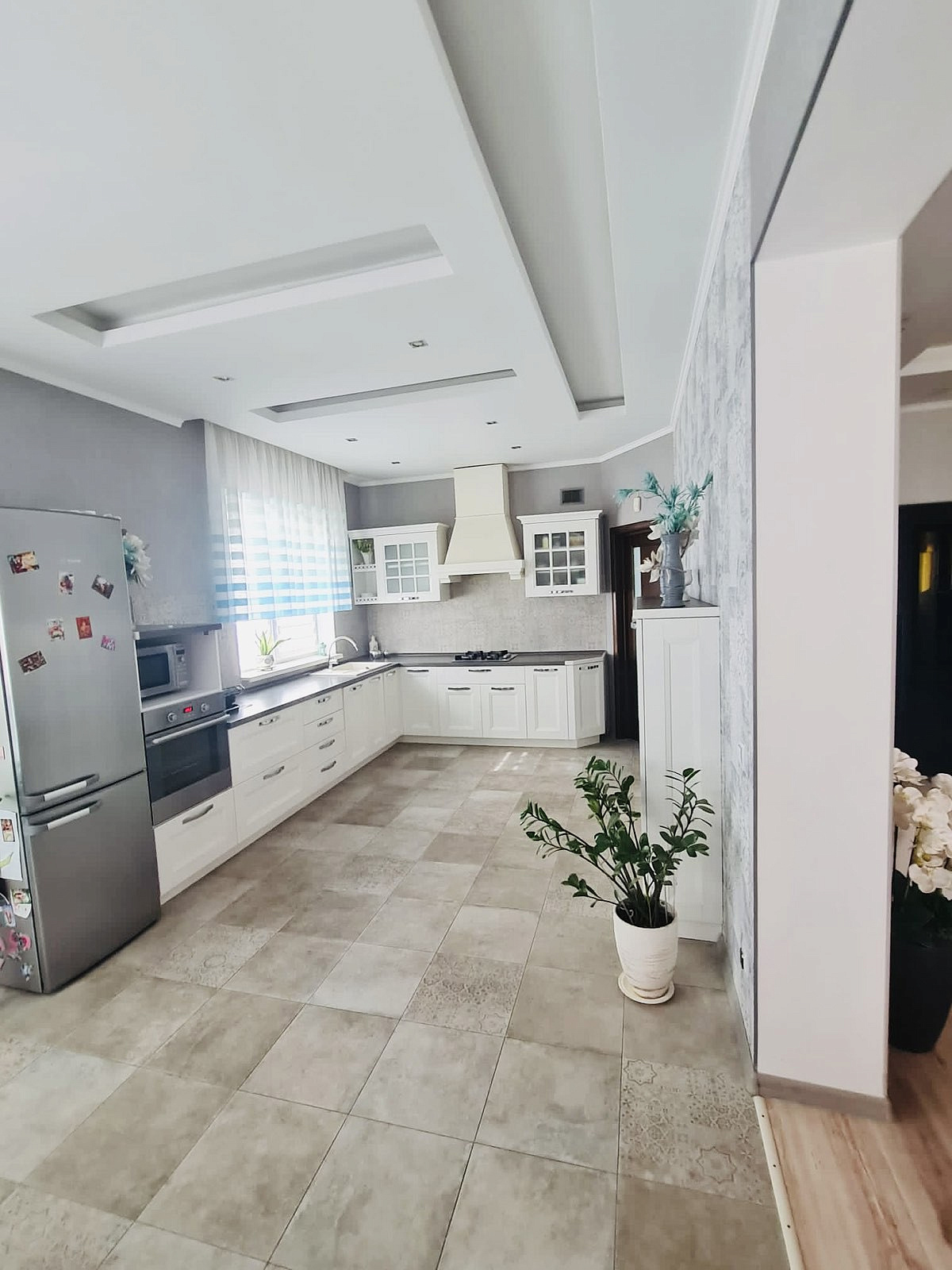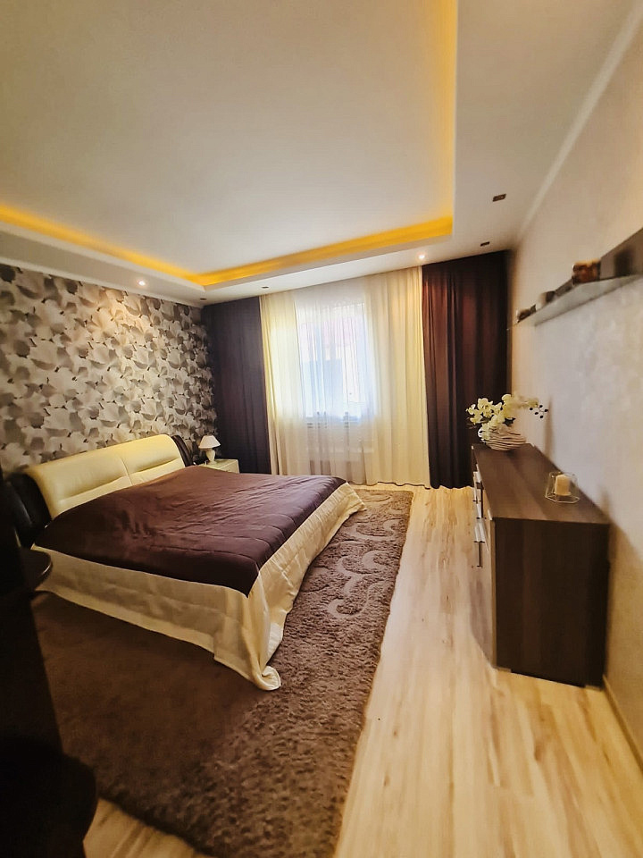 Качественная внутренняя отделка в доме-это сочетание светлых тонов и спокойных природных оттенков. Точечное освещение комнат, направленный свет подчёркивает эту уютную тёплую атмосферу. Кстати, в цену входит встроенная мебель и бытовая техника, остальное убранство дома по согласованию.