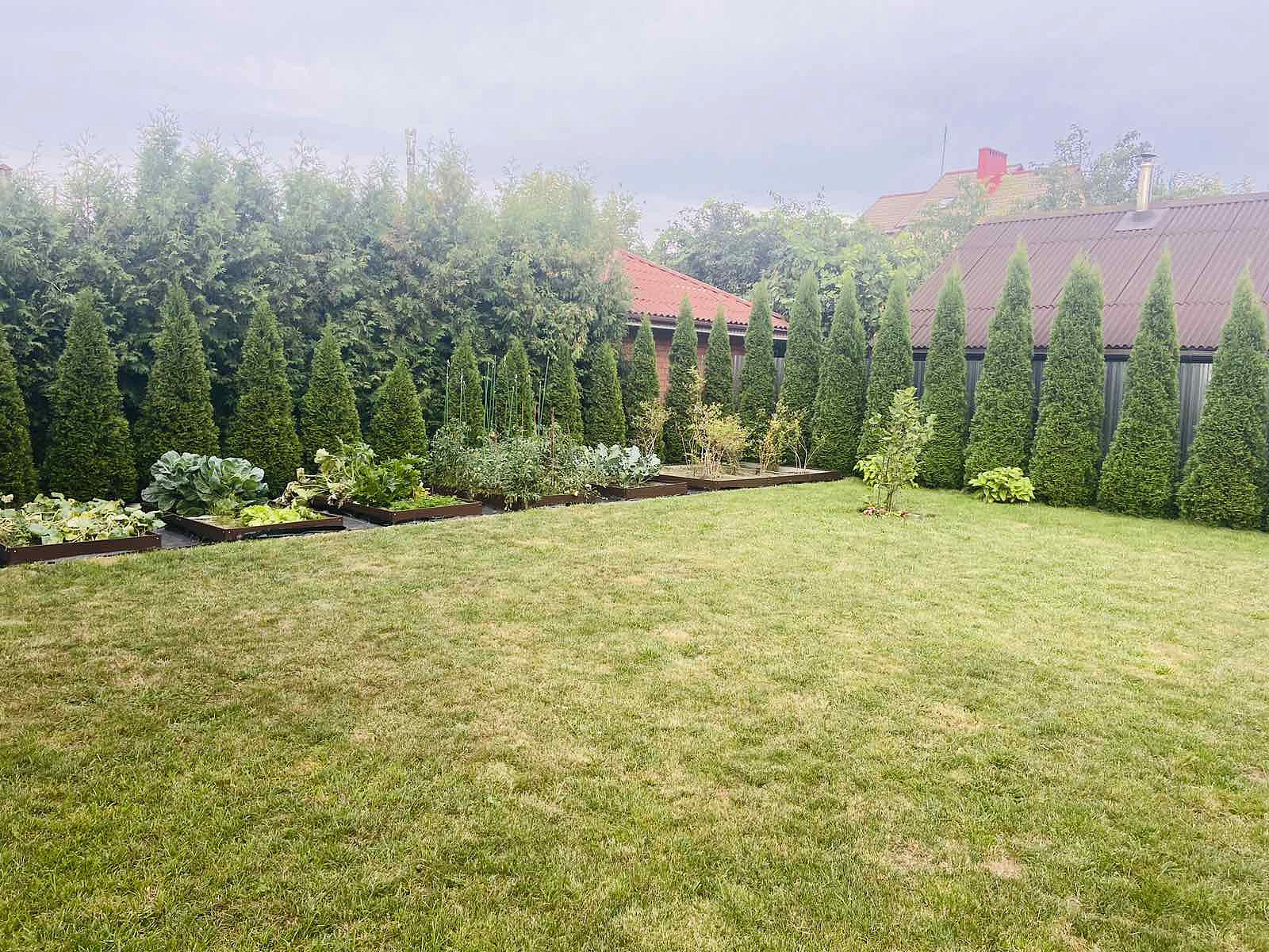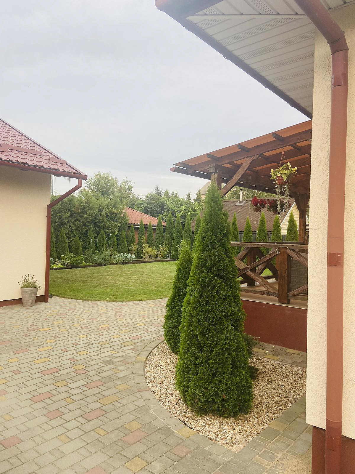 Земельный участок правильной формы продуманно оформлен ландшафтным дизайнером. На территории 7,7 соток в частной собственности - ухоженный зелёный газон, декоративно цветущие растения и редкие хвойники,тротуарная плитка.