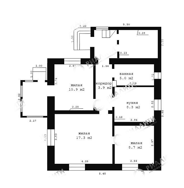 общая площадь — 54,1кв.м, жилая составляет 36,9кв.м., 3 жилые комнаты на 1 этаже и 2 на втором, кухня-8,3 кв.м , совмещённый санузел, терраса на втором этаже открывает красивый вид, в доме есть хороший погреб.