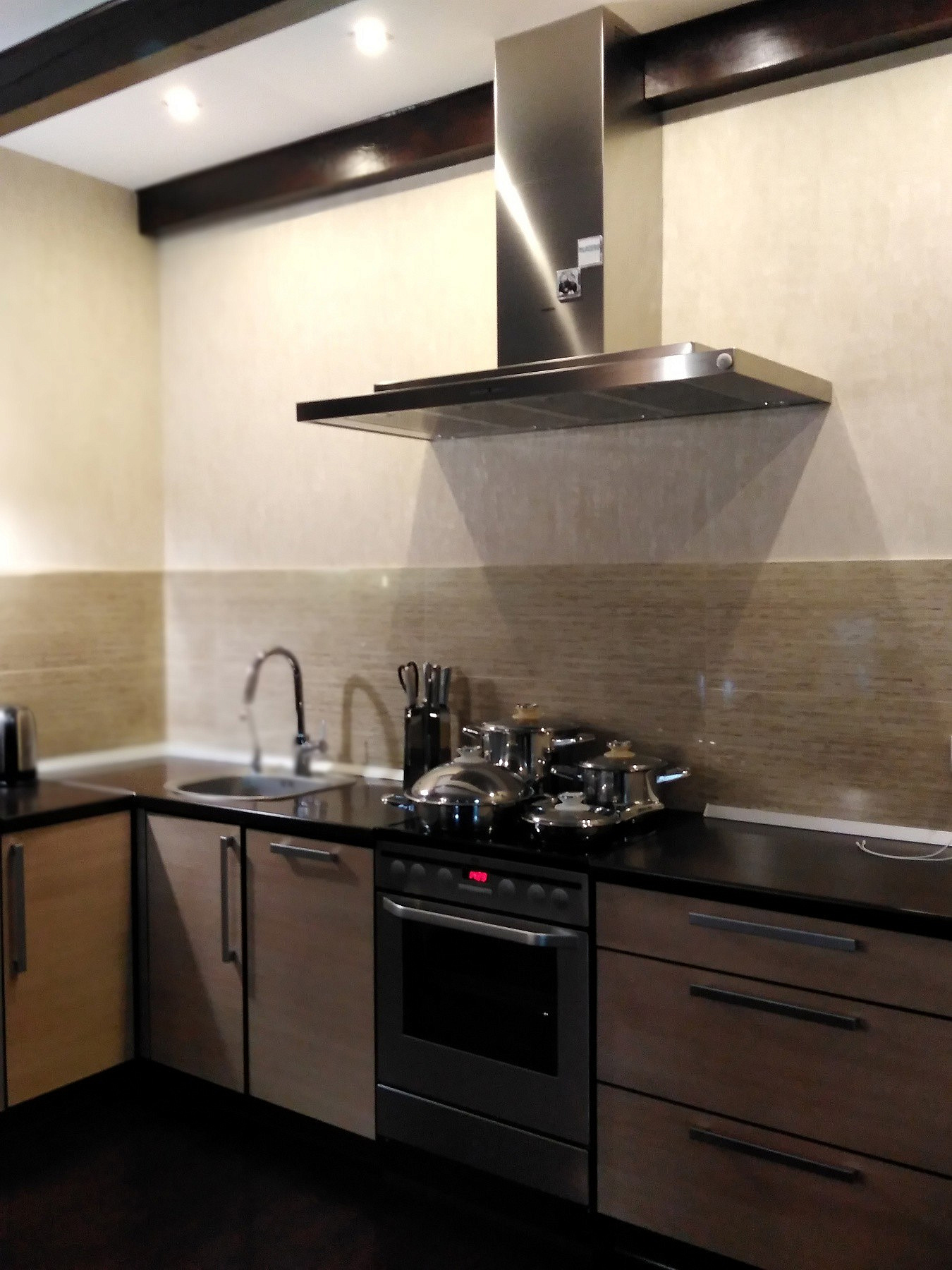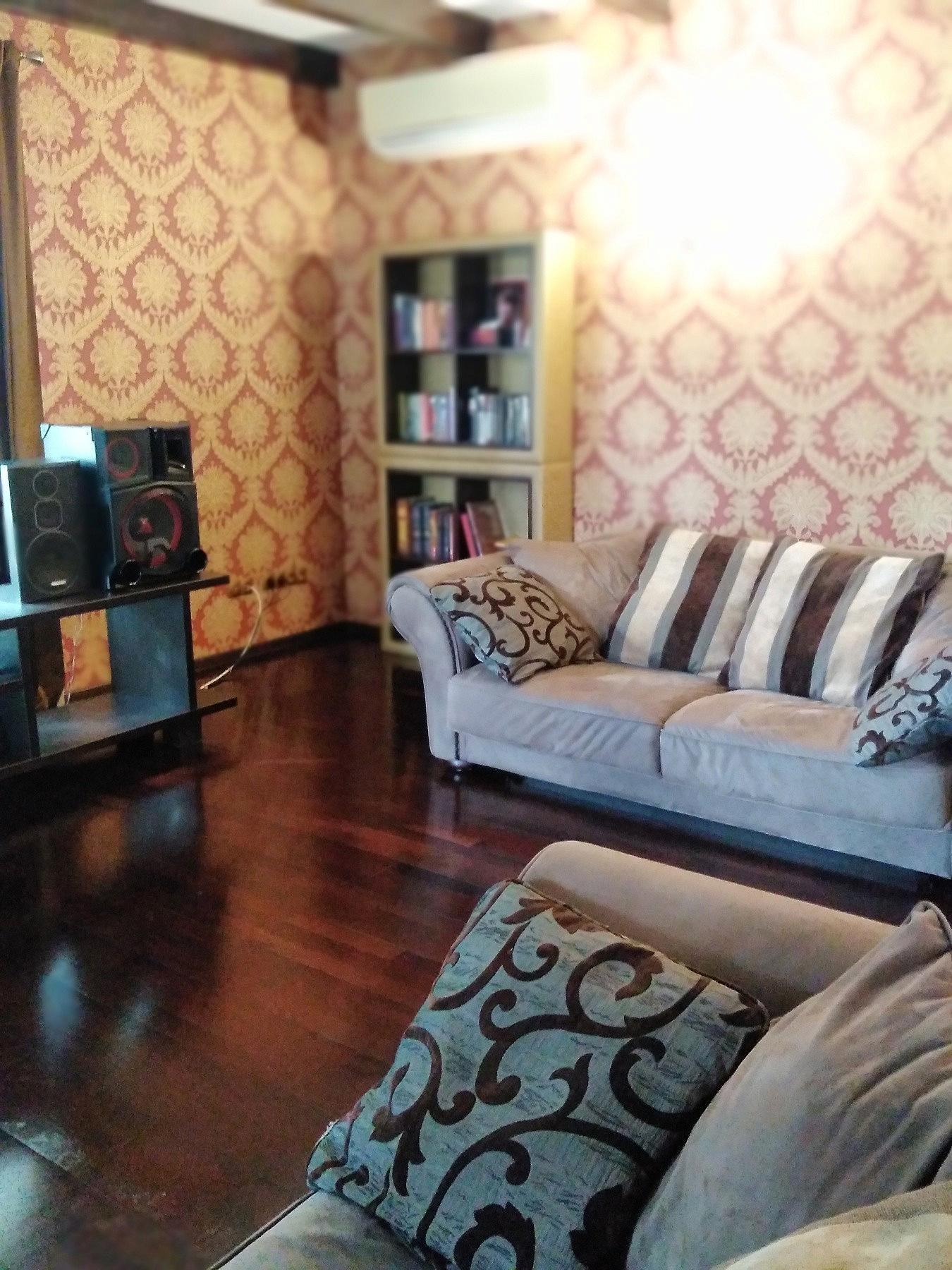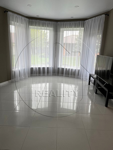 Дорогостоящая отделка из импортных материалов- итальянская плитка и обои, немецкая сантехника, паркетная доска и двери из массива натурального дерева. Имеется вся необходимая для жизни бытовая техника. Оба дома полностью автономны, возможно проживание 2-х семей. В гостевом доме-студии имеется большая терраса для круглогодичного использования, подвал глубиной 2 метра, полностью оборудованный под хранение овощей и консервации. Есть и гардеробная, которую легко переоборудовать в сауну.