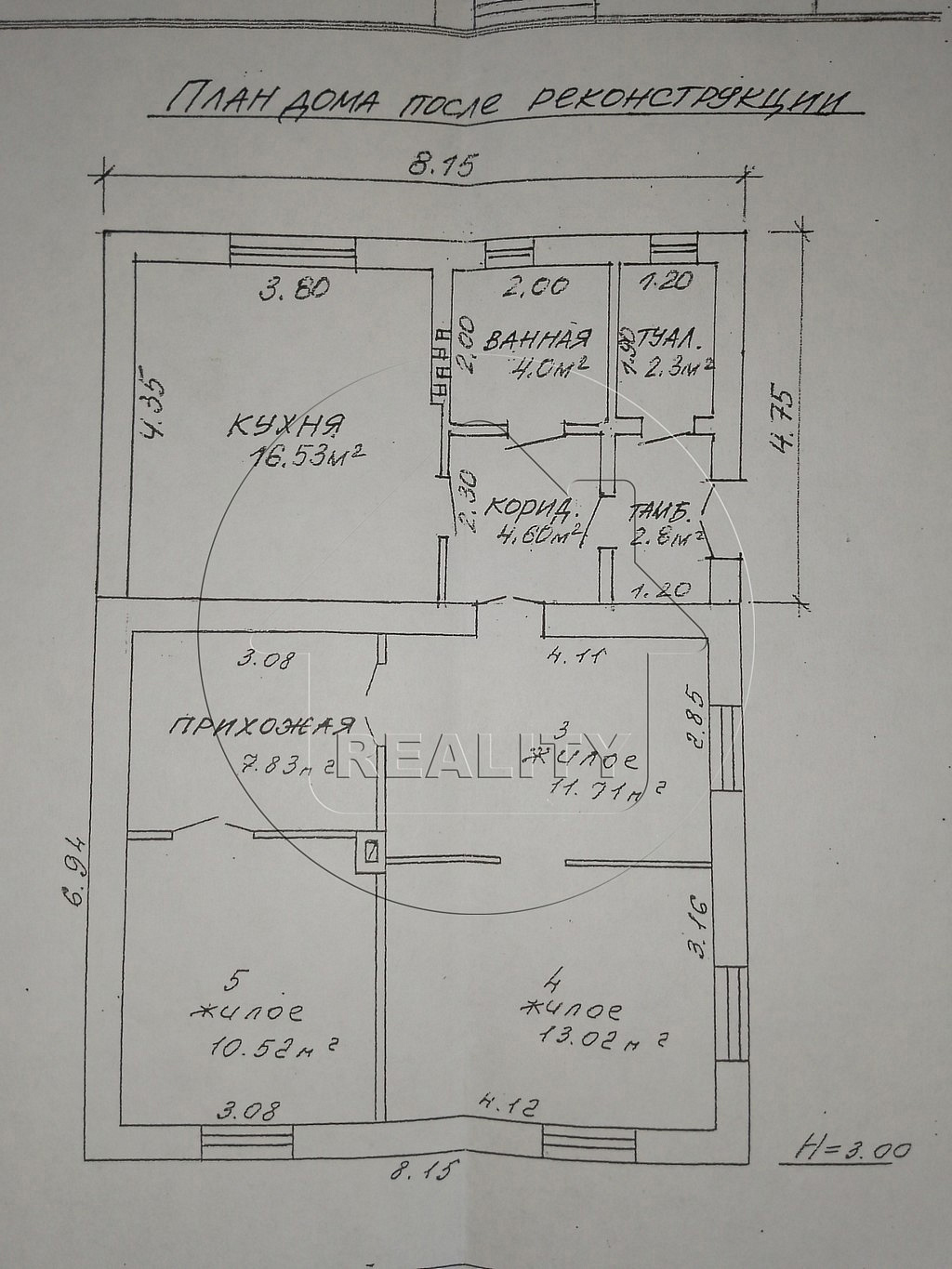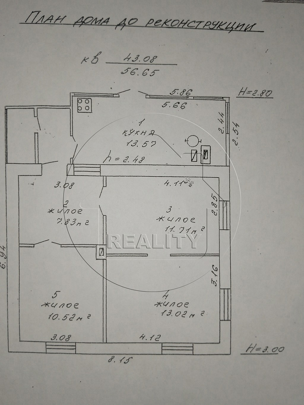 Общая площадь дома до реконструкции 60,7 м2; жилая 43 м2; кухня 13,57м2.