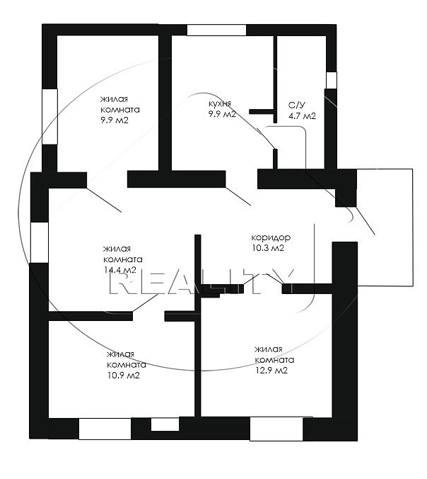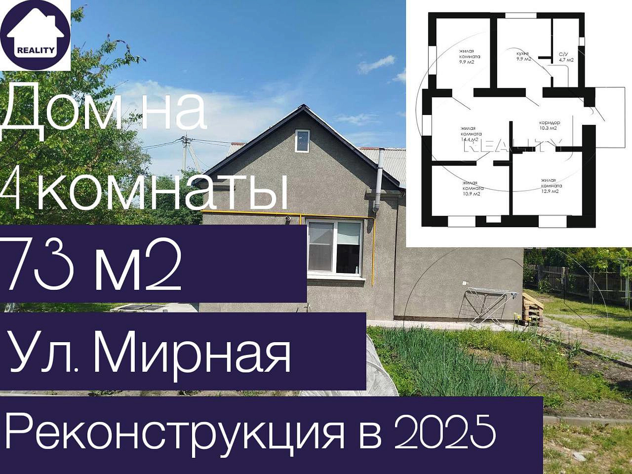 Общая площадь дома 73 м2; жилая площадь 48.1 м2; площадь кухни 9.9 м2.