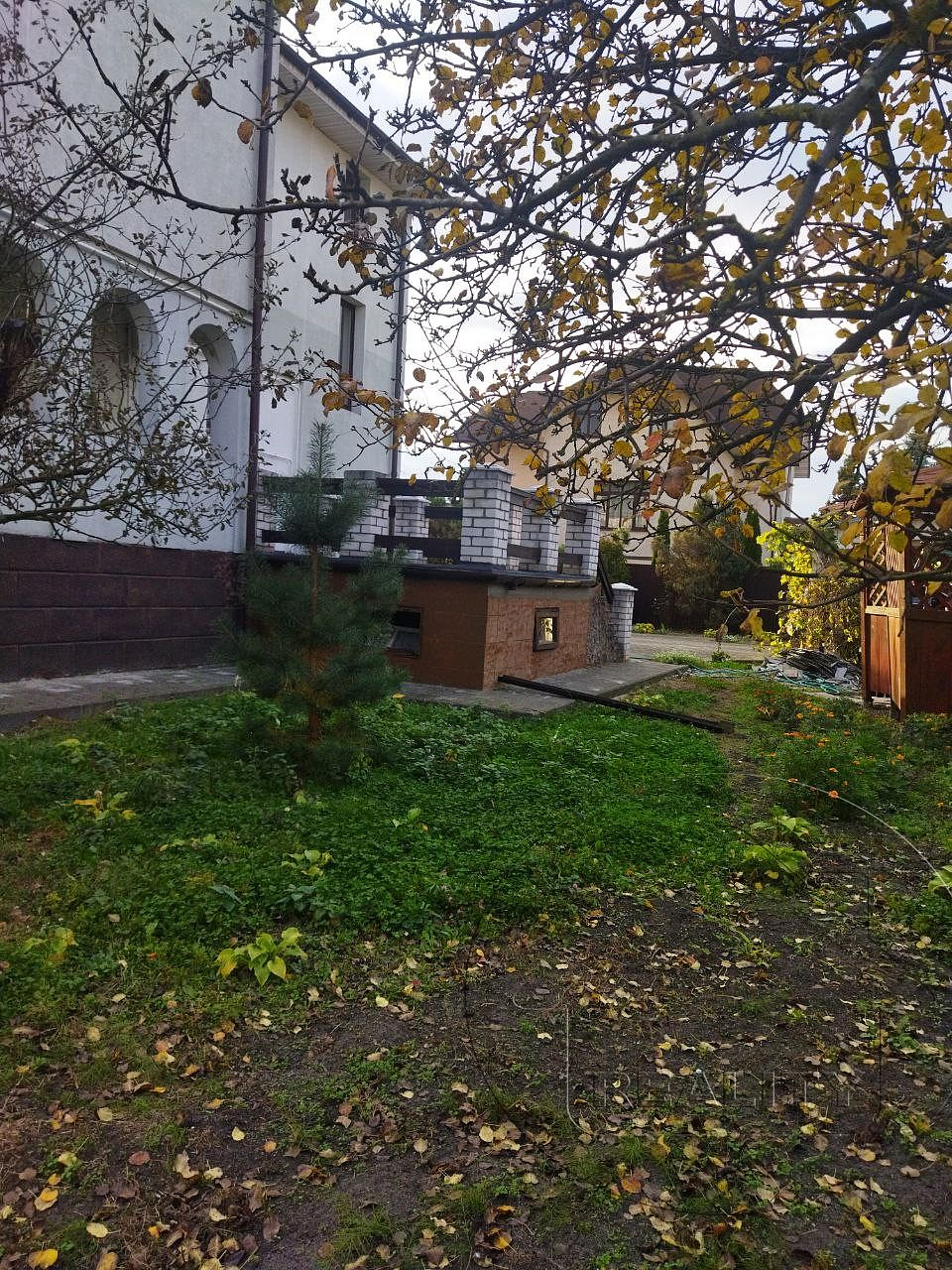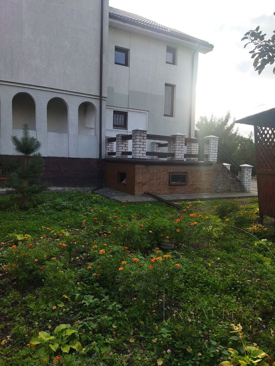 Материал стен – кирпич, утеплен, оштукатурен, окрашен. Кровля – металочерепица.