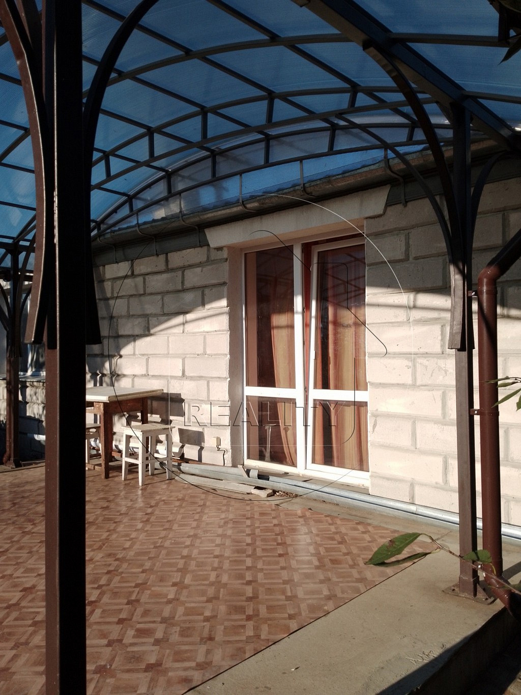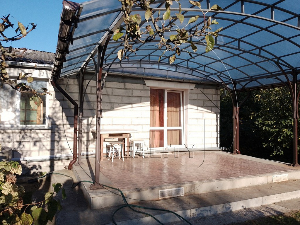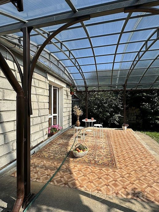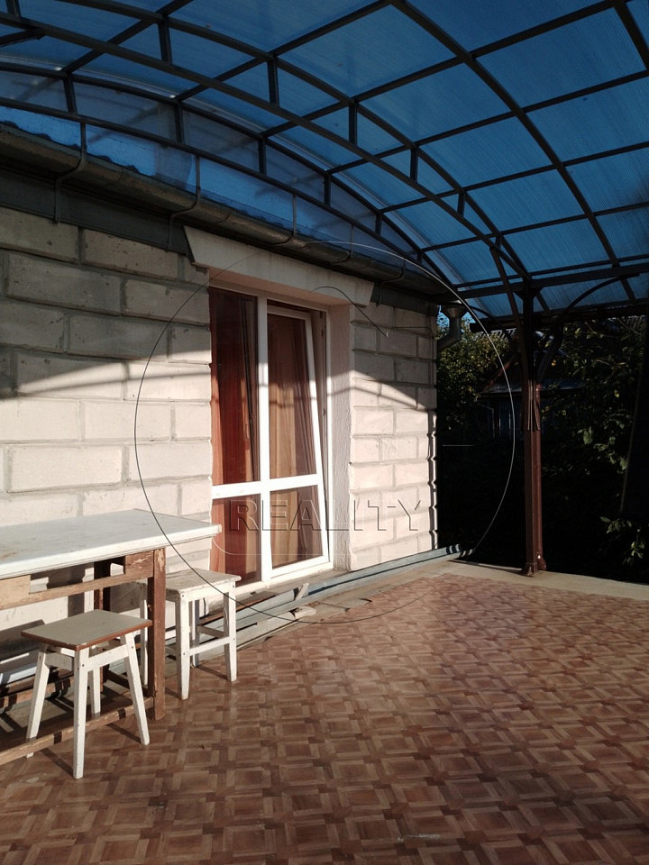Стены дома- из бруса, обложены блоками. Две отапливаемые пристройки из блоков. Кровля дома - шифер. Окна ПВХ и двери со вторым выходом из жилого помещения на южную террасу. Две светлые изолированные комнаты. Совмещенный санузел. Кухня-столовая 11,5 кв.м. Кладовая и небольшое помещение свободного назначения.