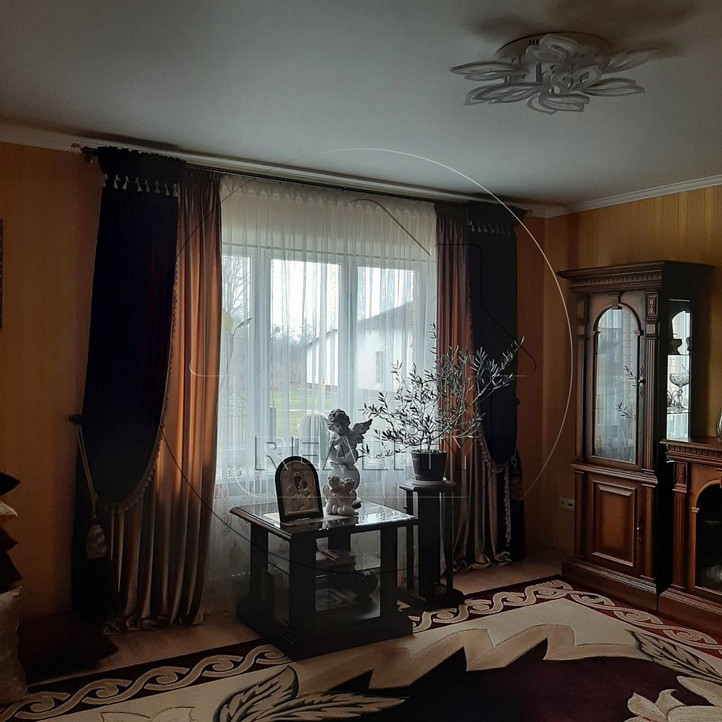 Двери первого этажа дома- из массива дуба. Лестница и двери второго этажа из ясеня. На полах-паркетная доска. В санузлах обоих этажей,тамбуре,кухне,холле и под лестничным пространством- керамическая плитка и водяные тёплые полы. Радиаторы отопления в спальнях и жилых комнатах. Обои на стенах. Потолки- гипсокартон /акриловая краска типа Снежка.