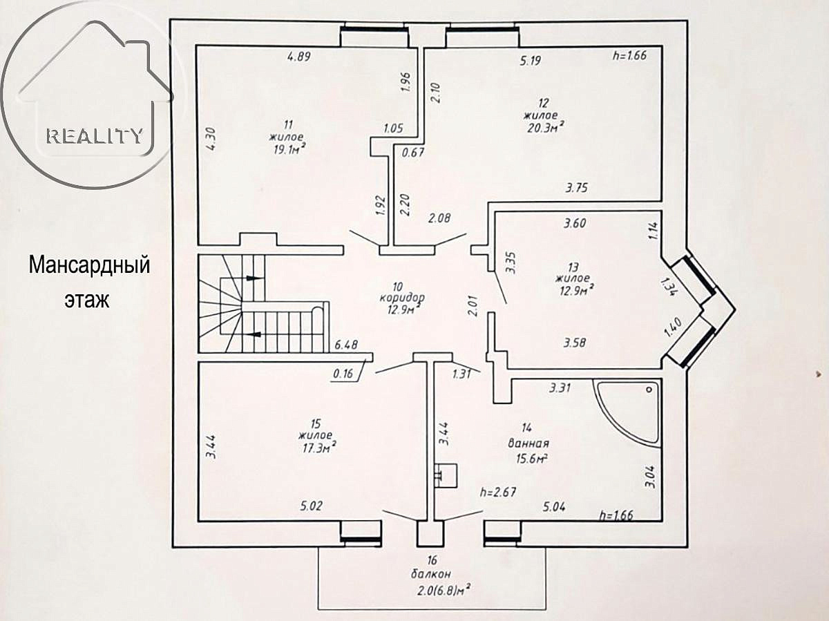 Мансардный этаж - приватная зона, состоящая из четырех спален, просторной ванной комнаты, холла и балкона.